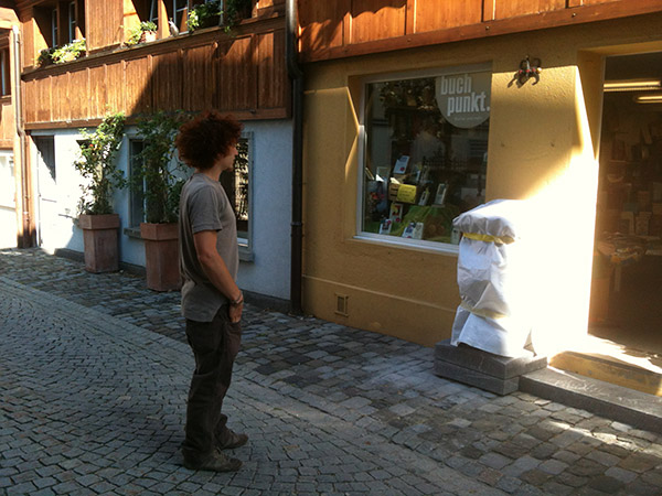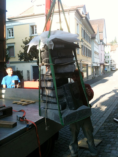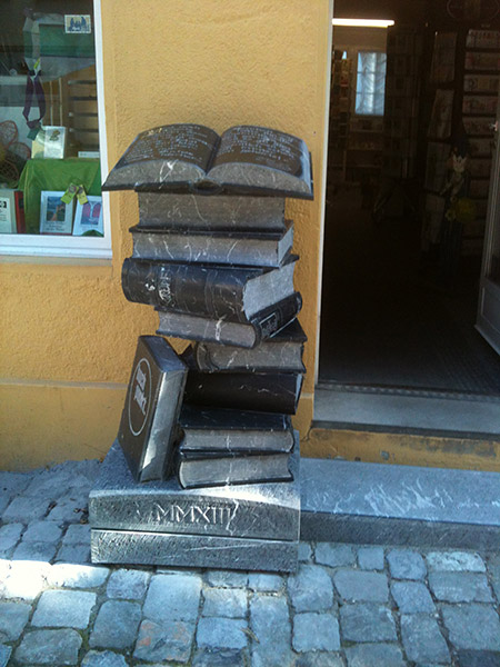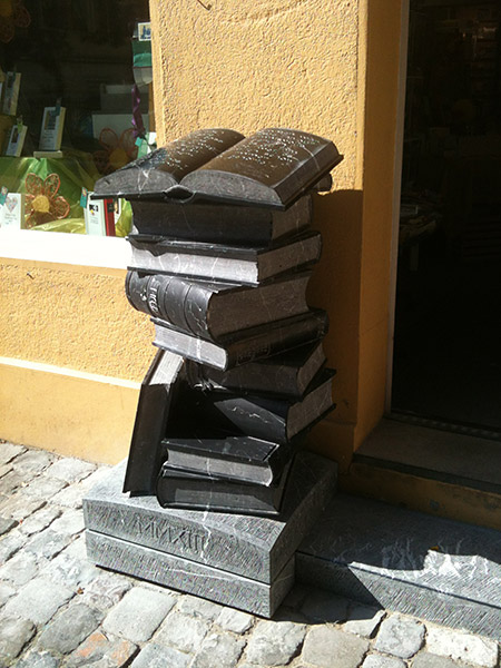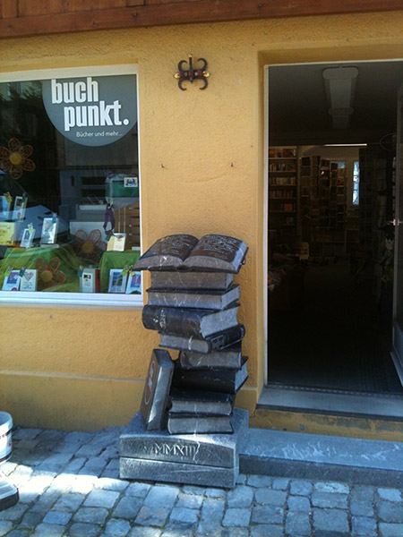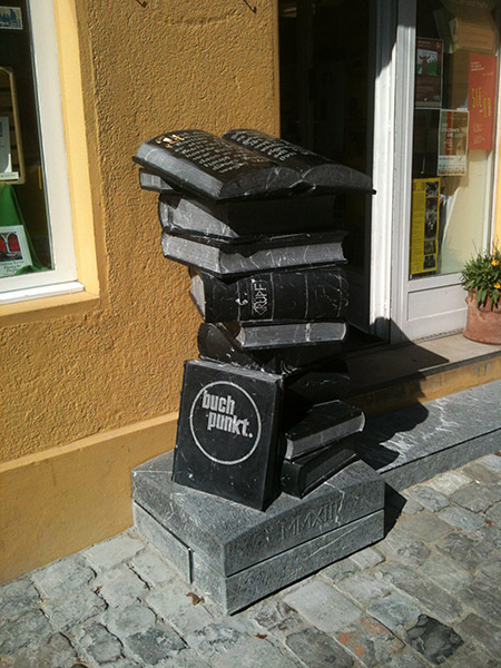 Für Buchpunkt hat der Steinmetz Tobias Kupferschmidt eine Skulptur aus Nero Marquina, einem schwarzen Kalkstein aus Spanien geschaffen, die den Eingang unserer Buchhandlung schmückt.